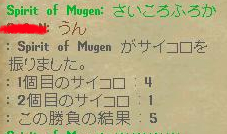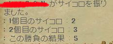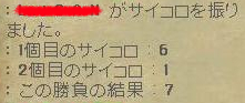 今日は数人で狩に行ったので戦利品の分配にサイコロを使うことになった。 ちなみに3人で分けた。 まずはおいらがサイコロを振る ・・・5 駄目だこりゃ 次の人が10を引いた。 そして次の人が あらやだ、被ったわ。 さて振りなおし。 あらやだ;;;;;;;;;;;;orz Oh!funky! 次っつぎいぃぃぃぃぃいいいいいい! いやあああああああああああああああああああ こいやああああ! っしゃおらああああああ! Nani kono shinkuro (某者のプロフェィールパクった) 次においらがまたまた5を引いて ラストに 10 長い戦いが終わった(負けたけど) 久しぶりに楽しかった。